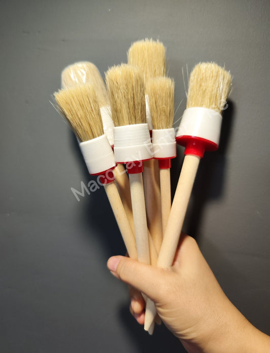 IN-07 6pcs Boar's Hair Bristle Wooden Handle Car Detailing Brush Set