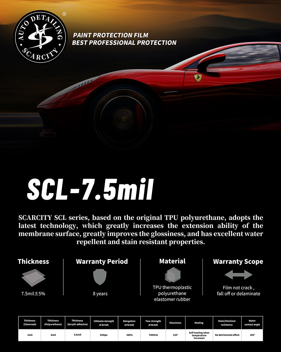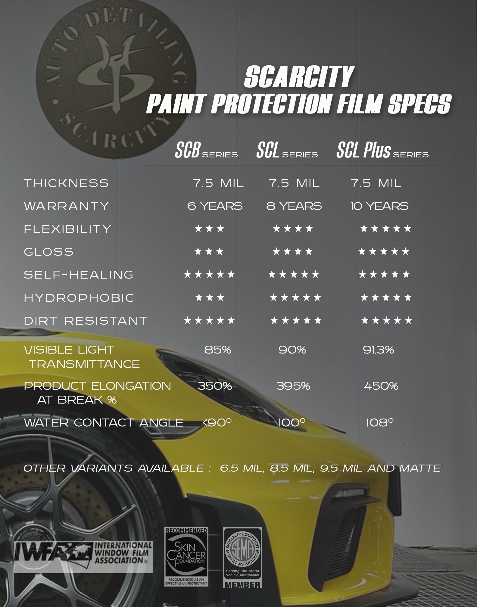 𝗚𝗹𝗼𝘀𝘀 𝗹𝗲𝘃𝗲𝗹: Gloss level might vary depending on the specific Scarcity 7.5 mil PPF variant