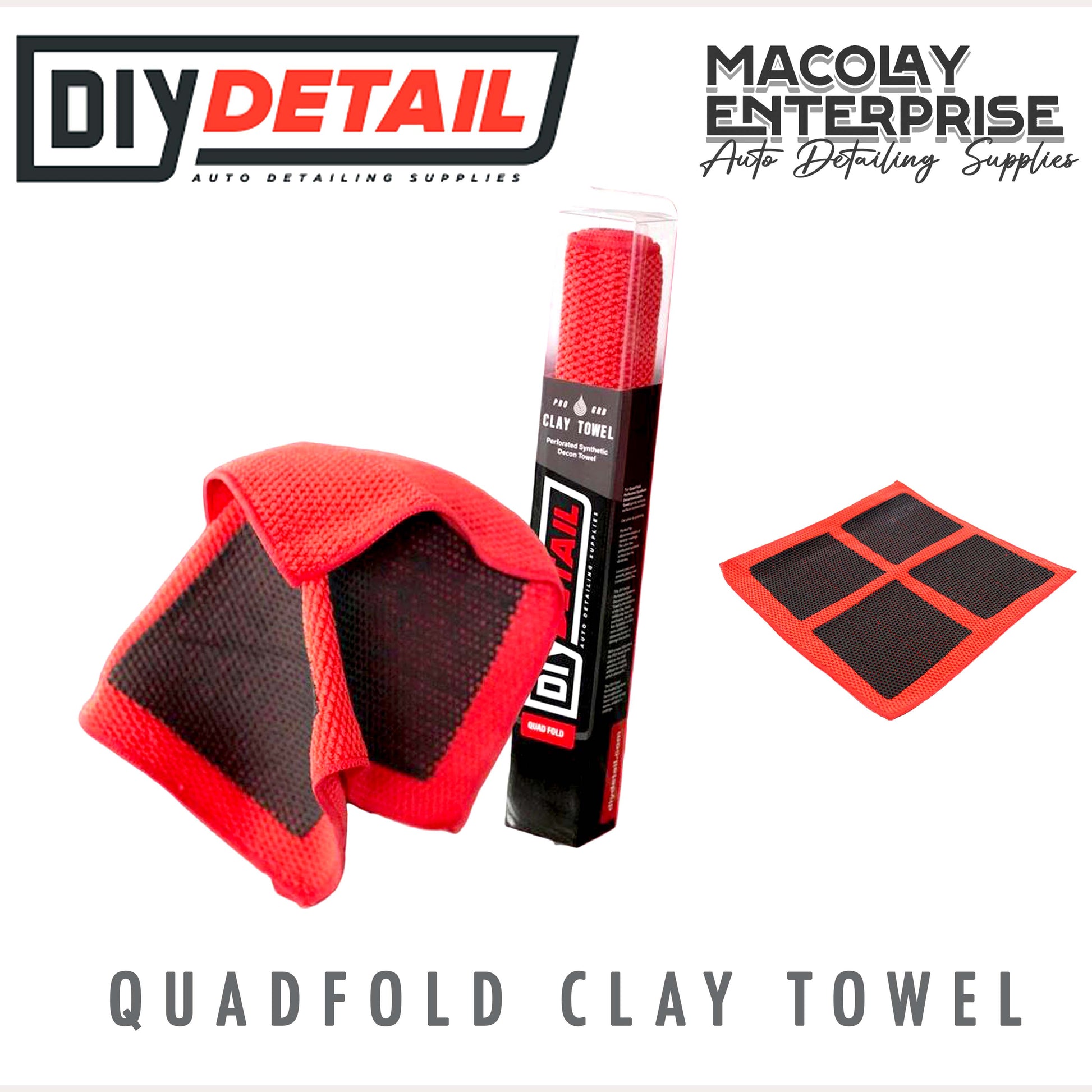DIY Details' Fine Grade Clay Towel or Perforated Synthetic Decontamination Towel safely removes medium to heavy, above-surface, bonded contaminants. These include: tree sap, water spots, paint overspray, bugs, road debris, and industrial fallout. Measuring 12" x 12", this microfiber flexible edge allows the synthetic clay to effortlessly comply with all the vehicle's body contours.