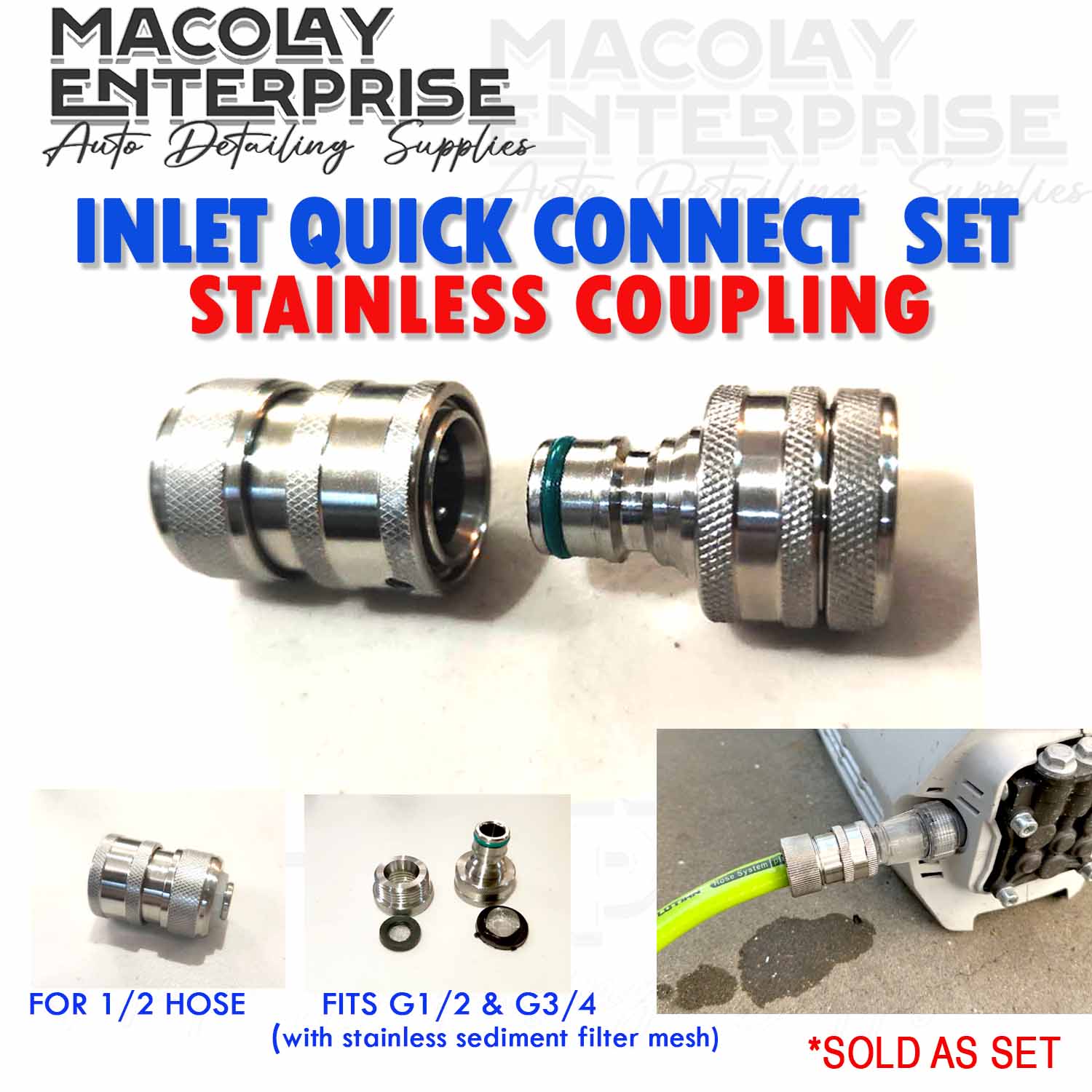F52 Pressure Washer Inlet Quick Connect Set Stainless Fittings for 1/2 Hose
