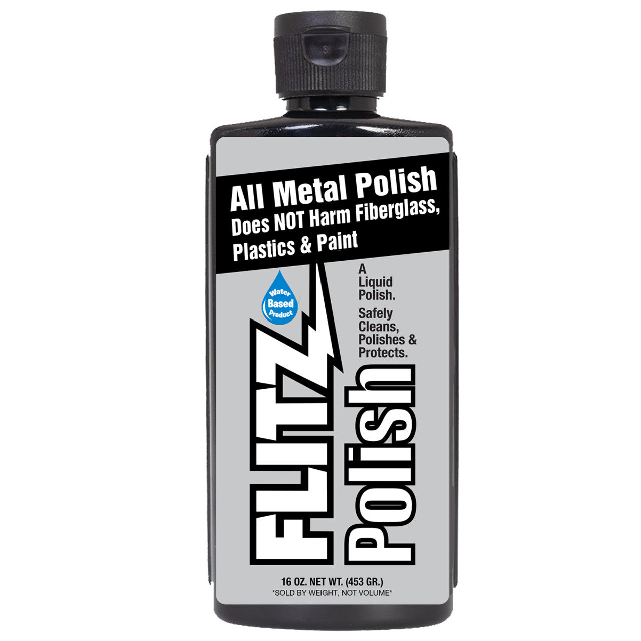- Fiberglass & Painted Surfaces: Apply Flitz with damp cloth. Polish with soft, dry cloth.