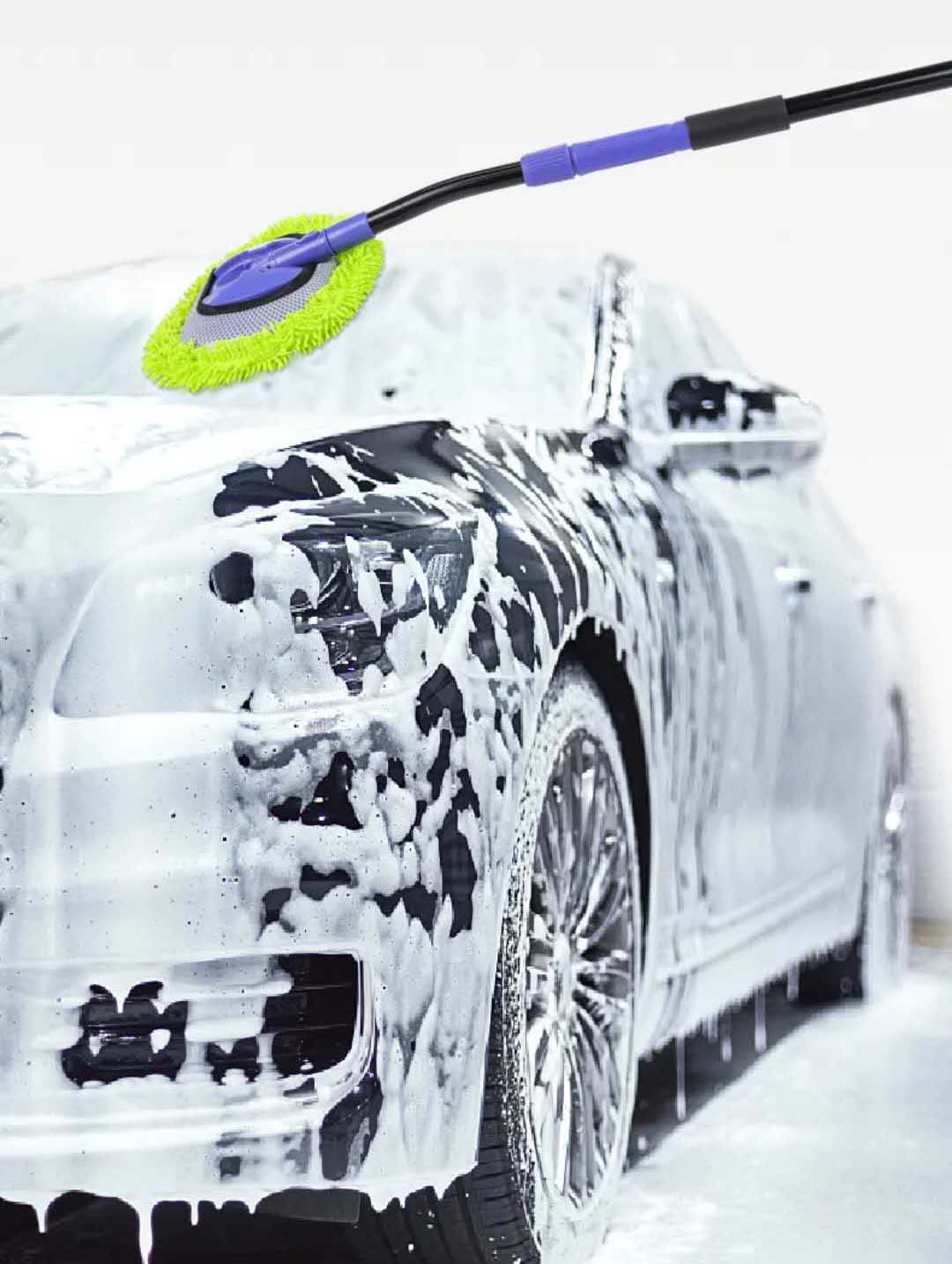 - 【USED WITH THE CAR INSIDE AND OUT】The car long handle mop is used with the car tyre brush and wiper. The car mop is used to clean the top of the car and the car window.