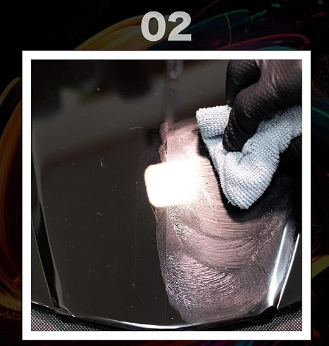 • Rub evenly using microfiber towel