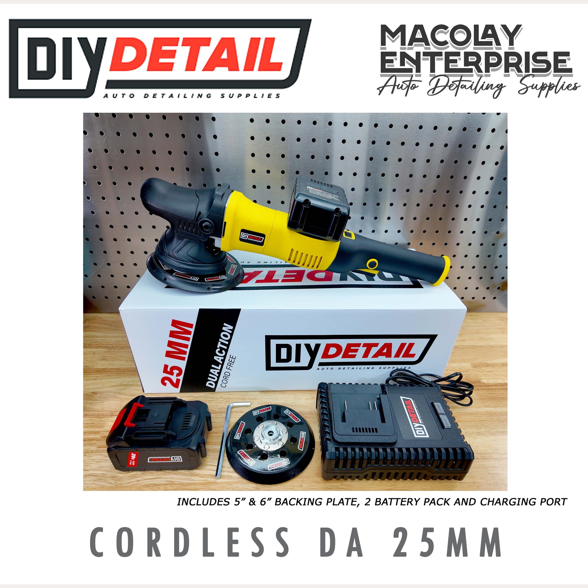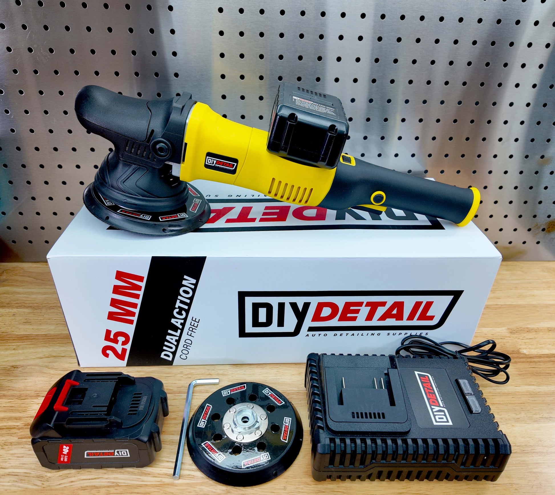 The DIY Detail 25mm Correction Pro DA Cordless Polisher is your portable powerhouse for precision detailing. This compact and lightweight cordless polisher is designed for tackling intricate detailing tasks with unmatched precision. Its 25mm orbit diameter ensures an incredible amount of power for removing swirls and scratches and correcting various paint defects. Some key features include cordless freedom, powerful performance, an ergonomic design, and variable speed control. Of these features, the one game changer is the battery mount location. While most batteries mount at the bottom of the polisher, DIY changed this up and you mount the battery in the center of the unit. This new mount location aids balance and user fatigue over an entire polishing process. Ideal for detail enthusiasts, professional detailers, and anyone seeking precision and control for their detailing projects. Experience the difference with the DIY Detail 25mm Correction Pro DA Cordless Polisher!