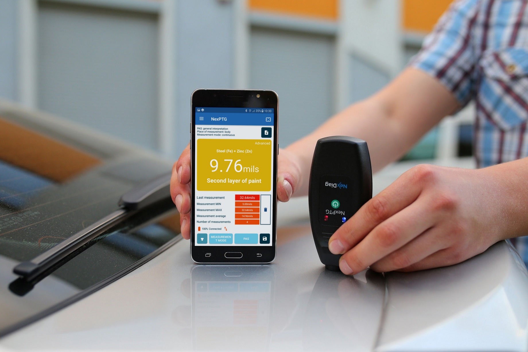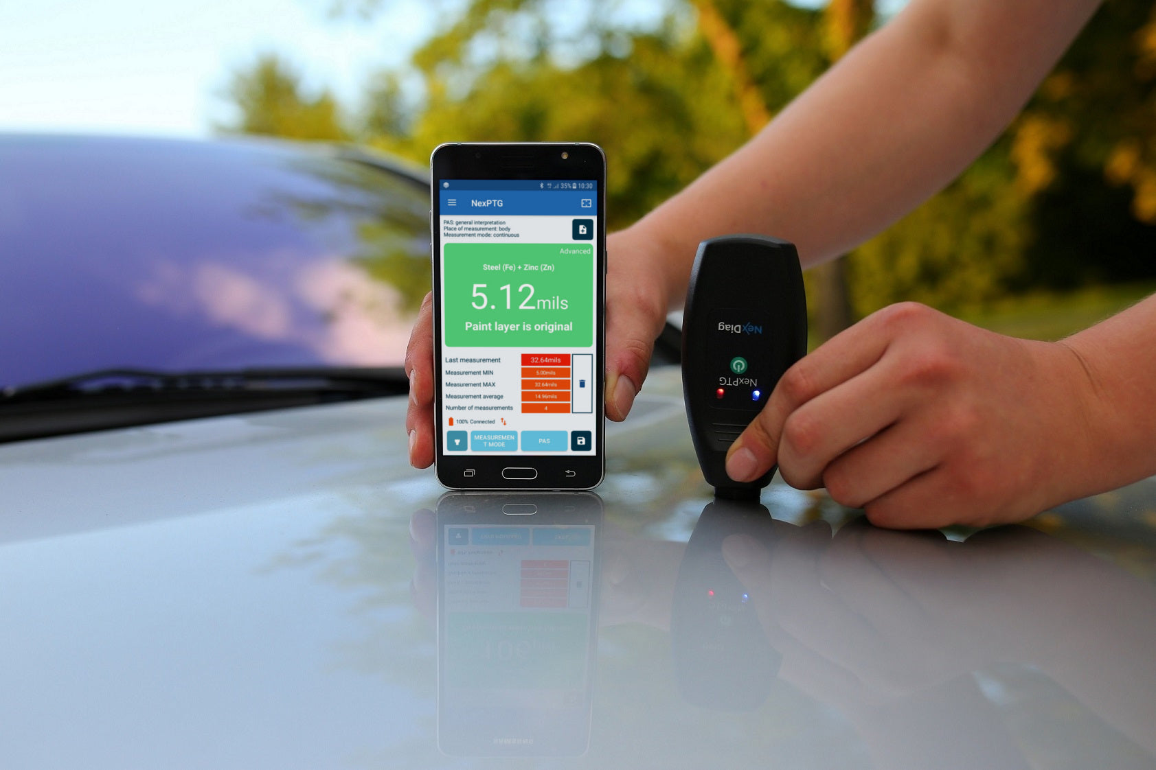 NexPTG devices are the most innovative wireless thickness gauges on the market. NexPTG devices perform 10 measurements per second and show very precise readings, what is more, it can be used to check virtually any car. NexPTG automatically recognizes and tests the lacquer coating on steel and aluminium elements.
