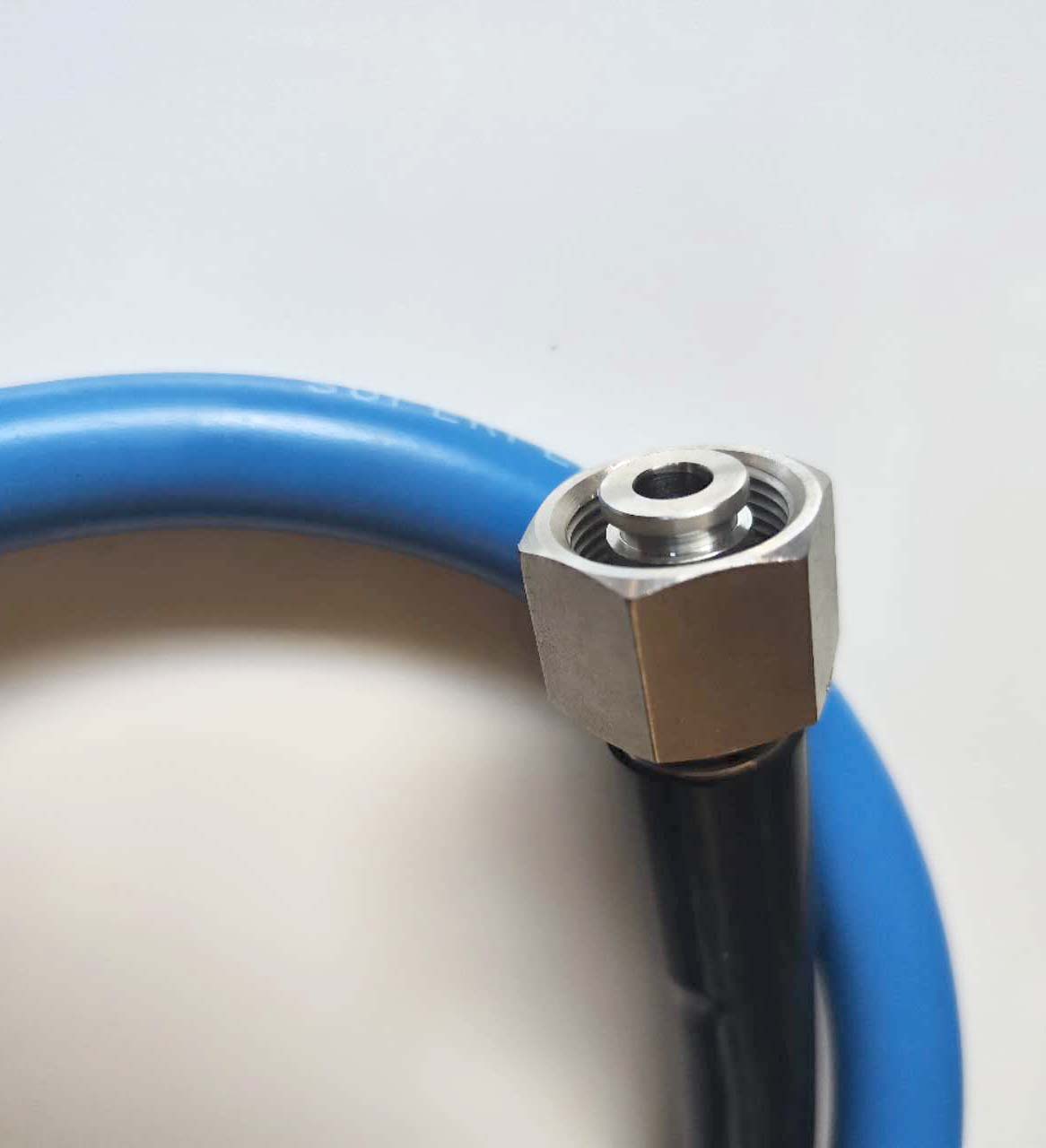 Whipline hose to connect your high pressure washer to your hose reels with stainless fittings ● Available in 3 and 5 feet ● With o-ring for M22-15 and M22-14 ● 3/8 hose size, 4000psi sold per piece